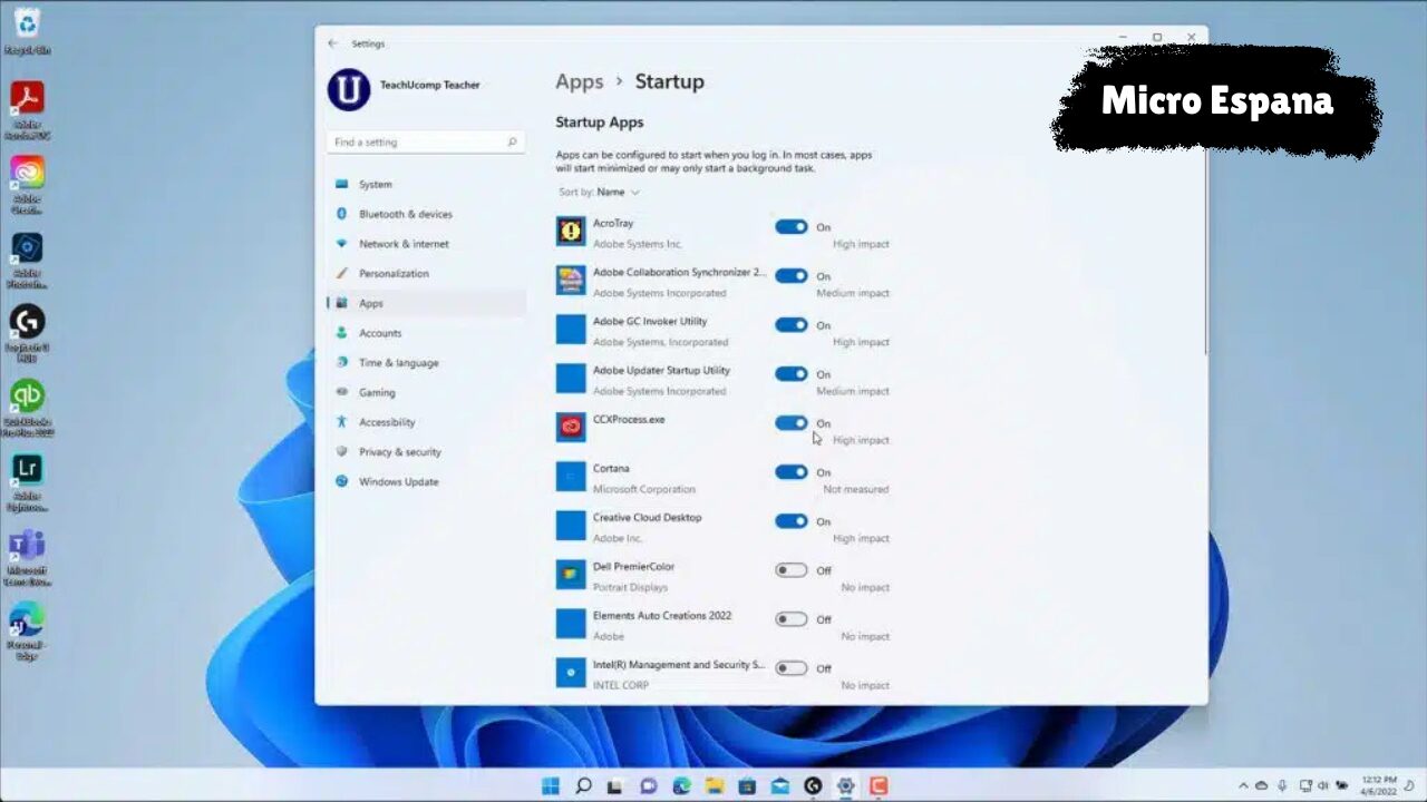 Administrar aplicaciones de inicio desde la configuración de Windows
