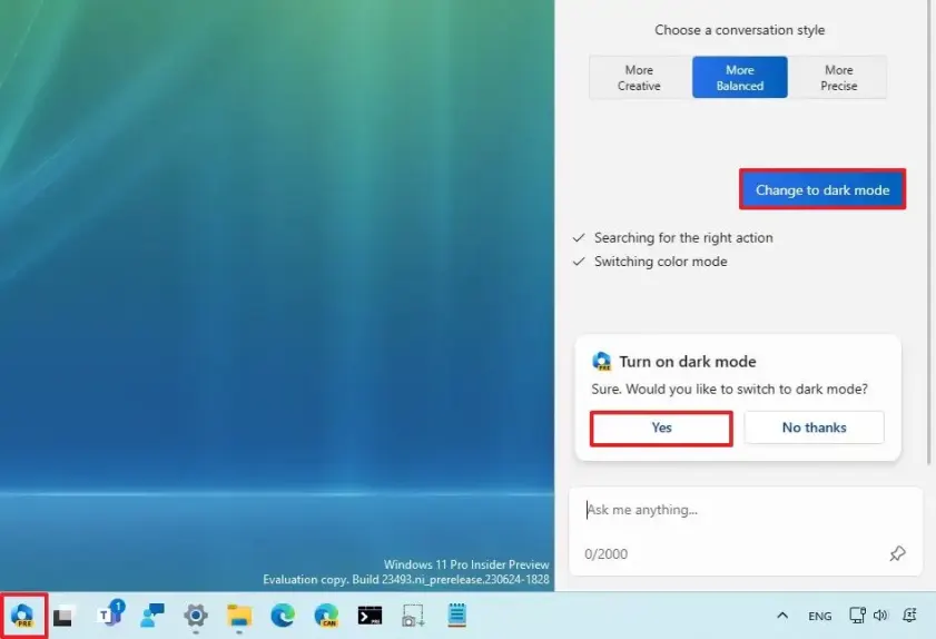 Microsoft ha anunciado la primera vista previa pública del nuevo «Windows Copilot» para dispositivos con Windows 11 inscritos en el canal de desarrollo del programa Windows Insider. Copilot es una nueva característica que integra Bing Chat AI y varios complementos, lo que le permite usar el lenguaje natural para comunicarse con el chatbot y obtener respuestas integrales a las consultas y modificar la configuración del sistema.