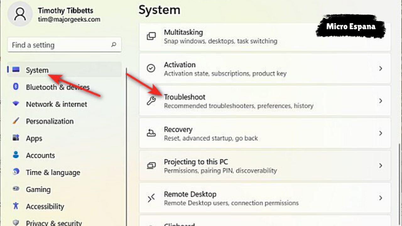 - Ve a Configuración > Sistema > Solución de problemas > Otros solucionadores.